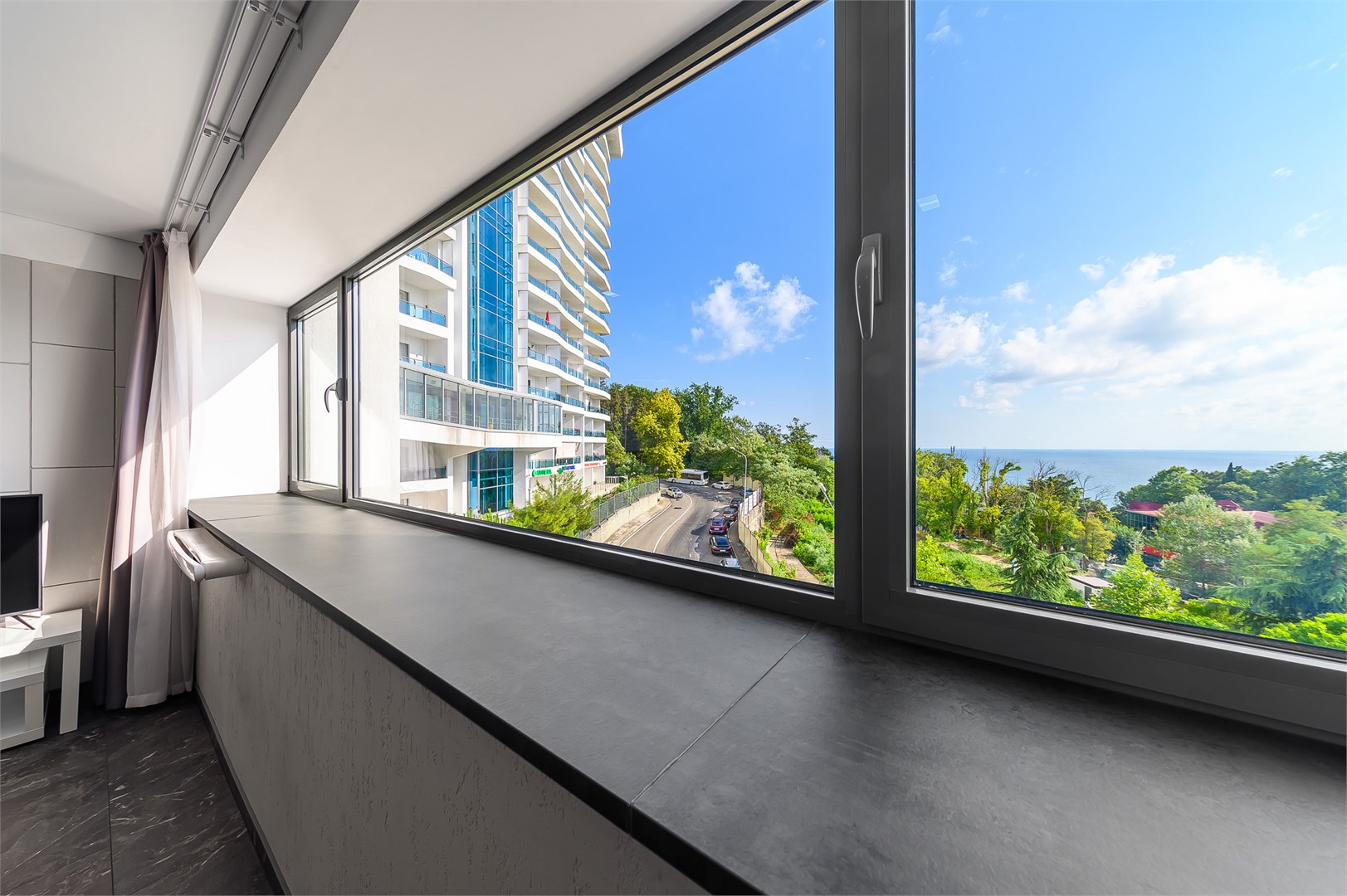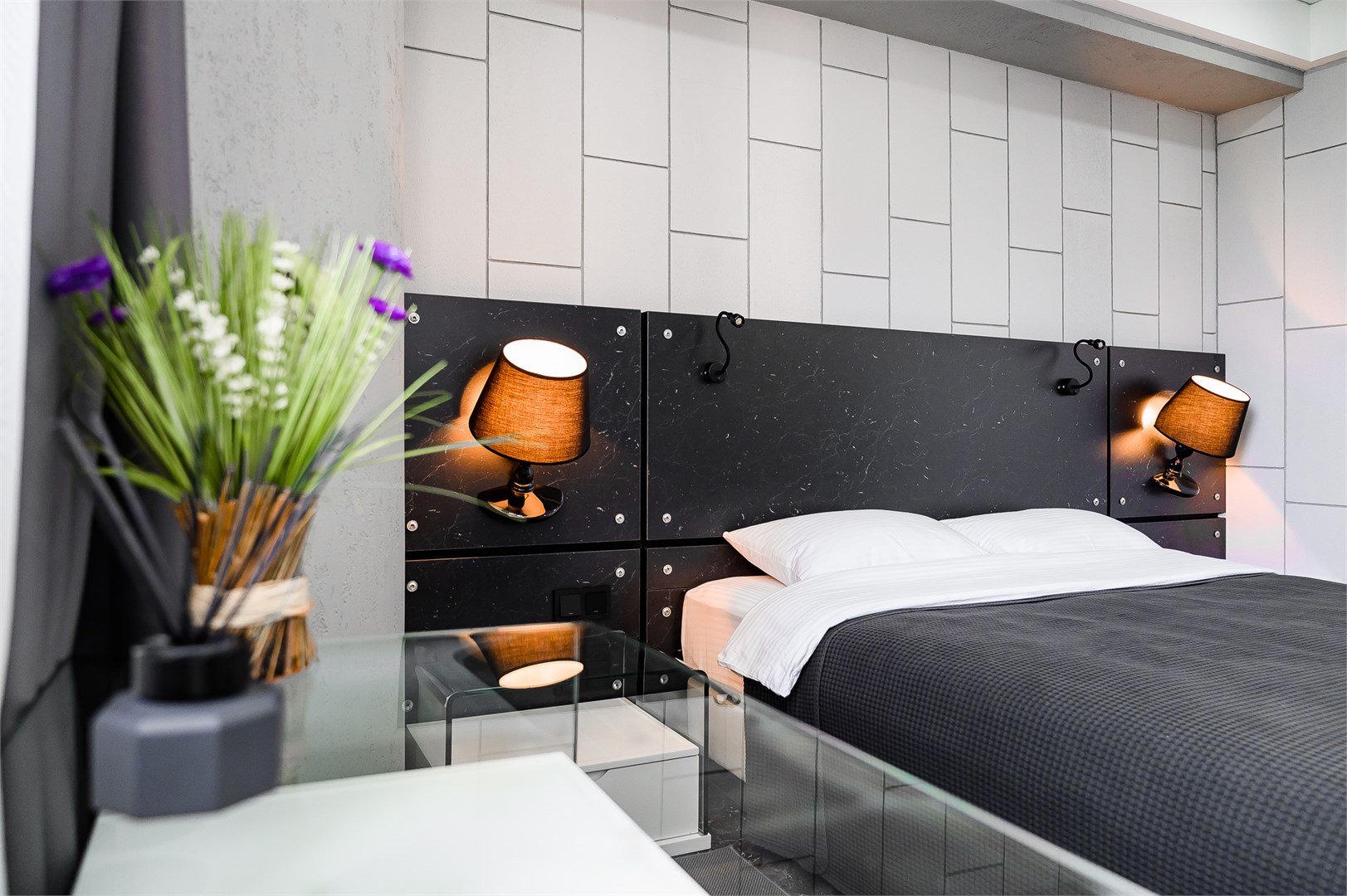 | Апартаменты Делюкс Панорама №4 | 22 кв.м. | 2 чел. | Мебель (вешалка, зеркало, кресло, кровать двуспальная, столик журнальный, стол обеденный, стулья, шк... | |