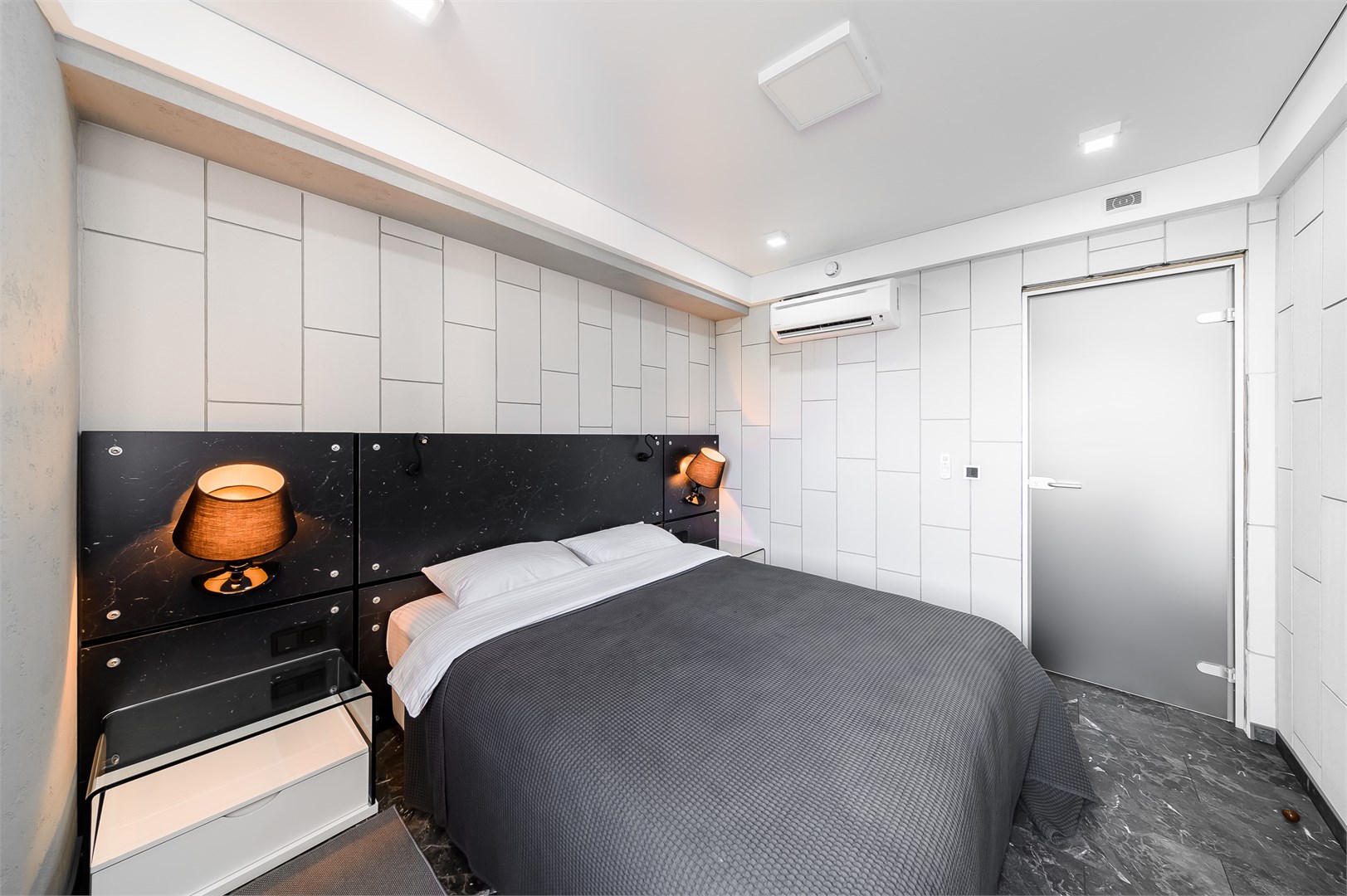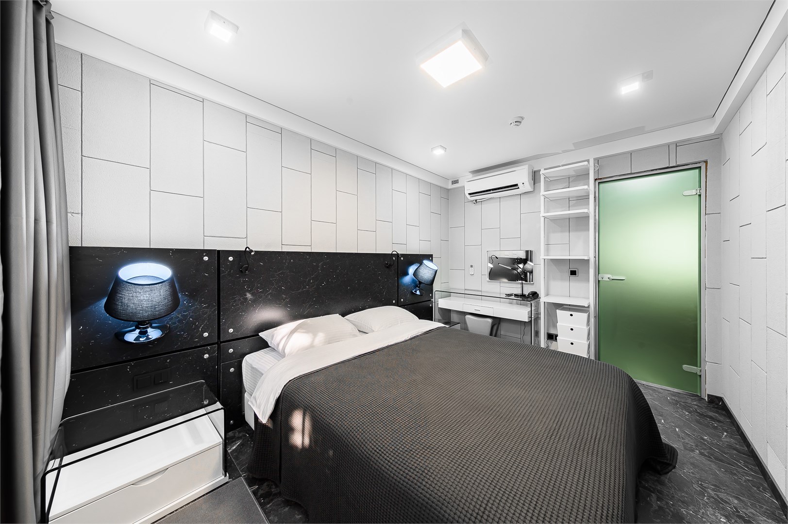 - Оборудование: кондиционер, мини-холодильник, набор посуды, плита электрическая, телевизор, телефон, холодильник, чайник