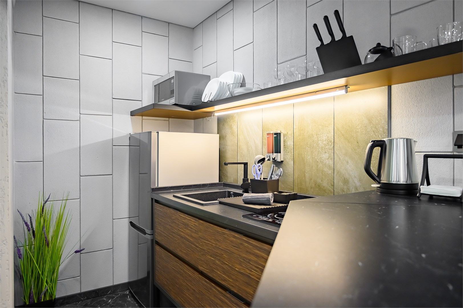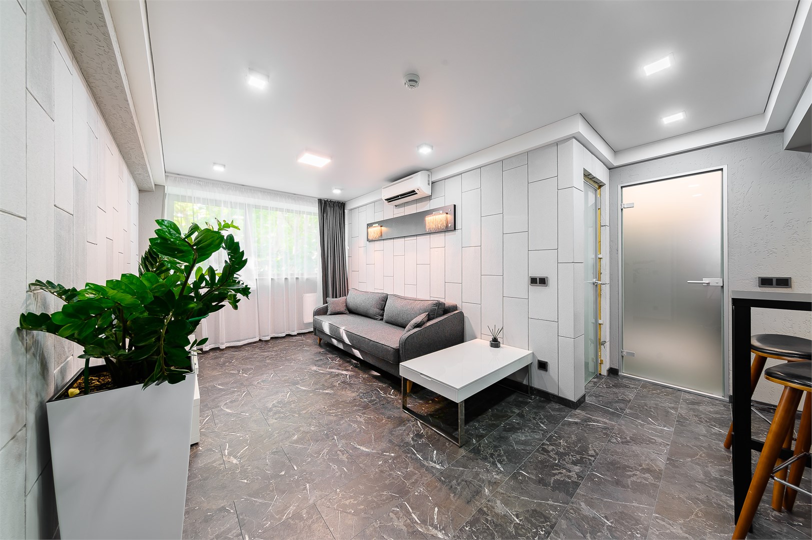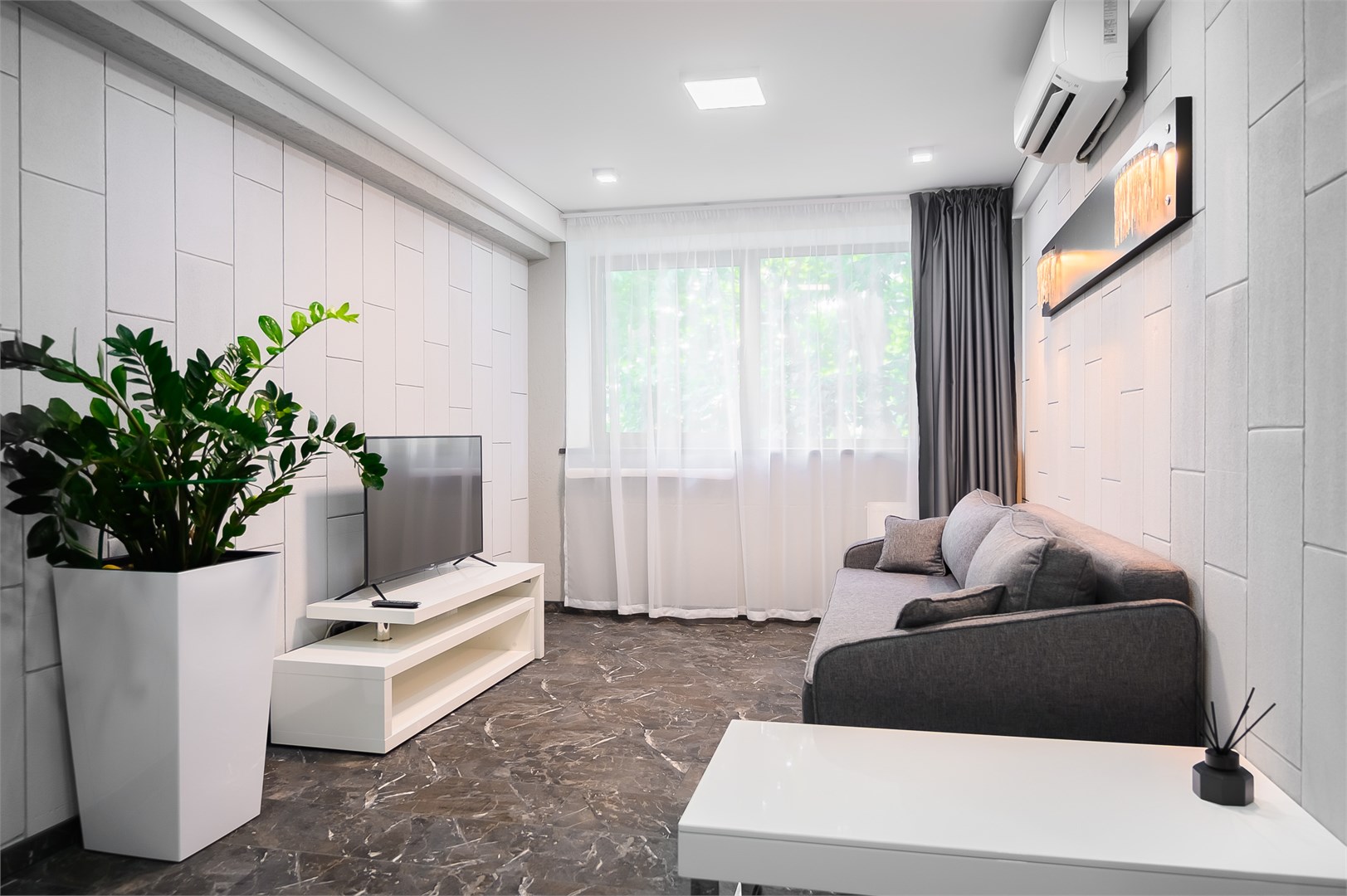 - Оборудование: кондиционер, микроволновая печь, набор посуды, плита электрическая, телевизор, телефон, холодильник, чайник
