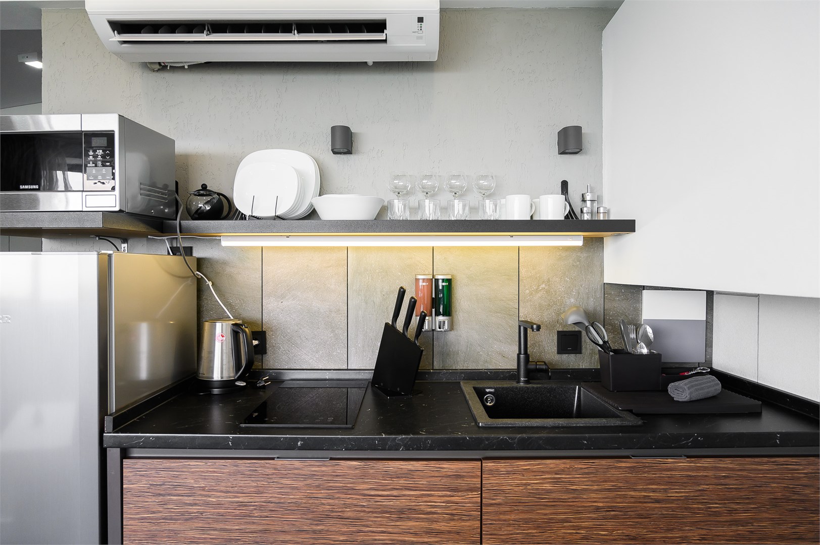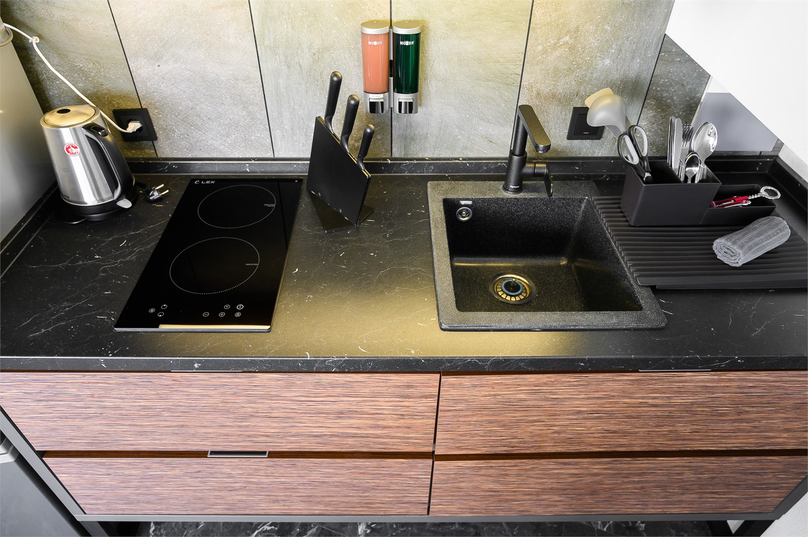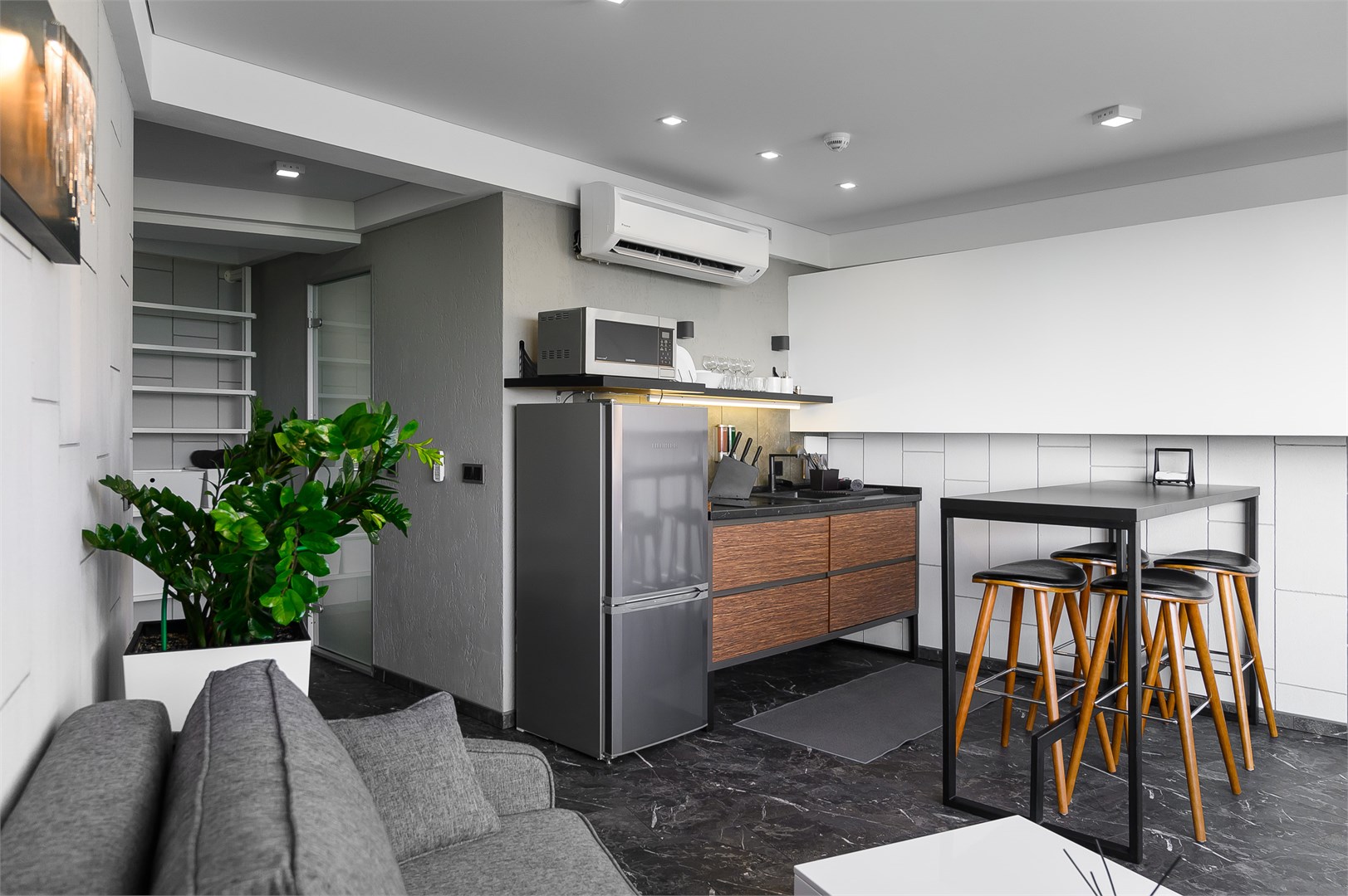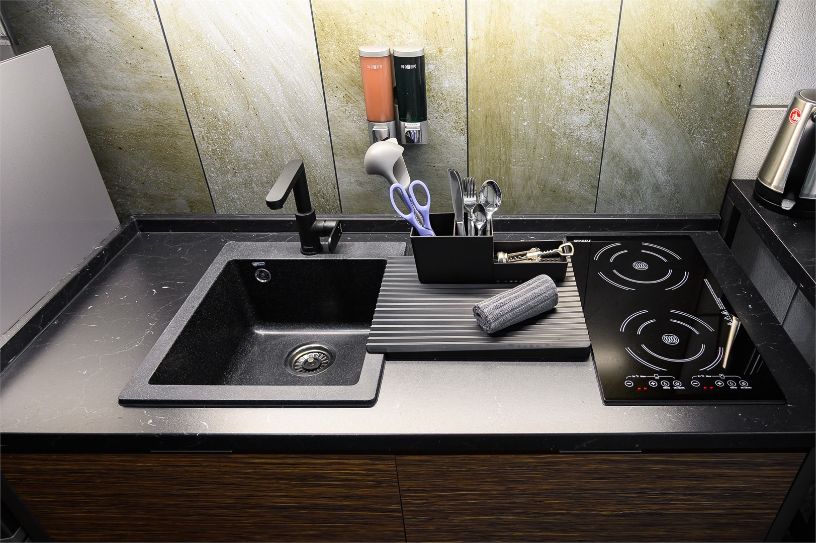 - Оборудование: кондиционер, микроволновая печь, набор посуды, плита электрическая, телевизор, телефон, холодильник, чайник