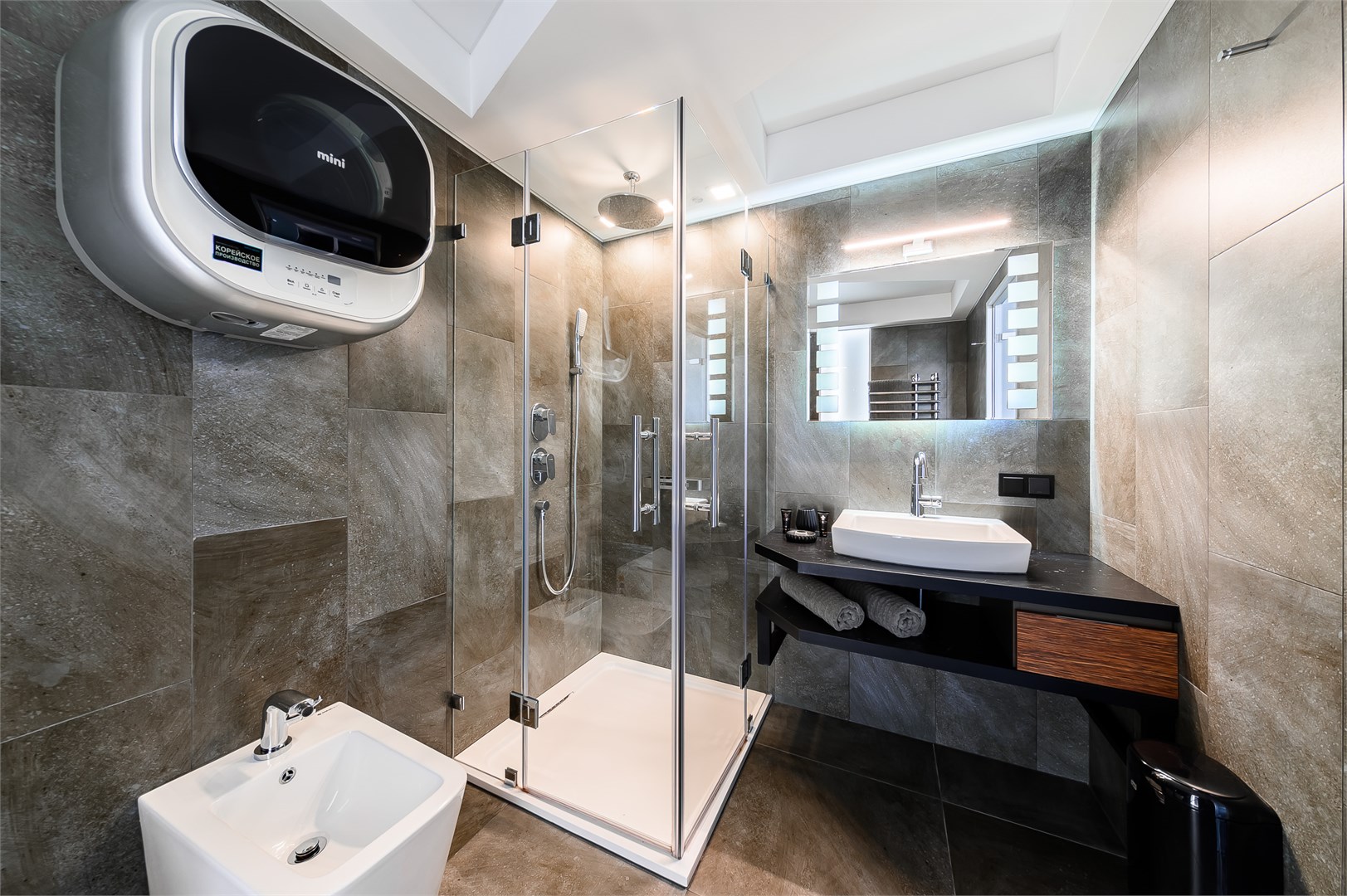 - Санузел: с душевой кабиной, тапочки, теплый пол, туалетные принадлежности, фен, халат