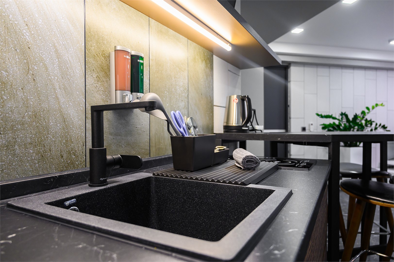 - Оборудование: кондиционер, микроволновая печь, набор посуды, стиральная машина, телевизор, телефон, холодильник, чайник