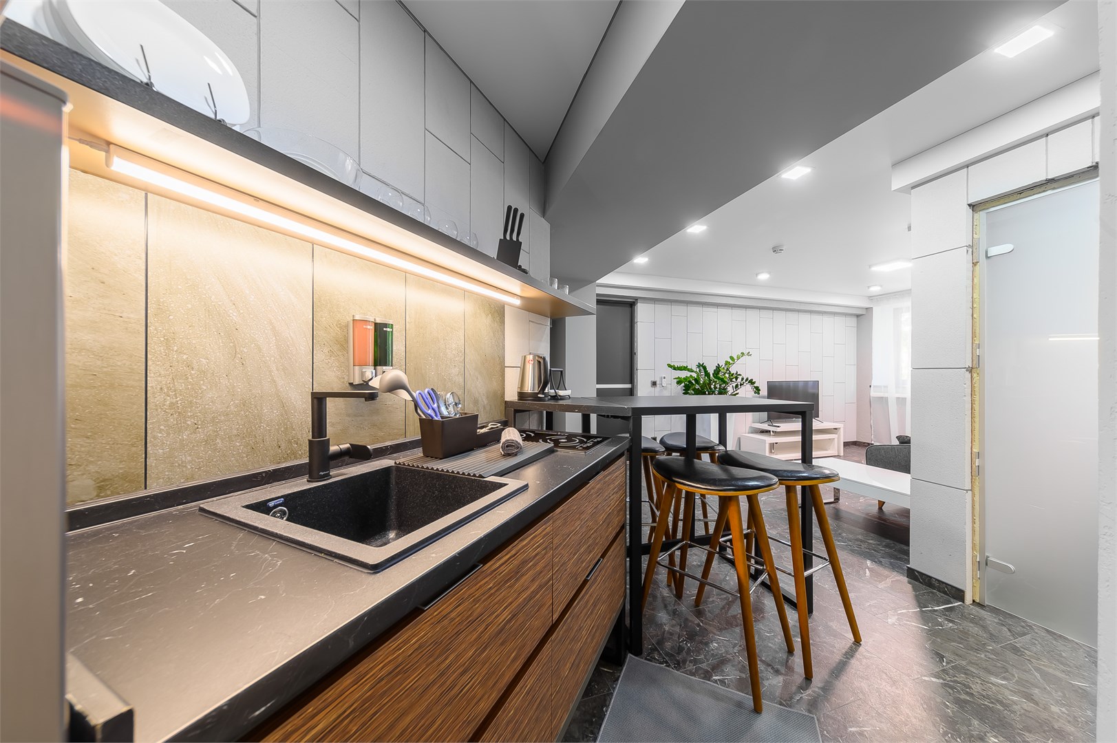 - Оборудование: кондиционер, микроволновая печь, набор посуды, стиральная машина, телевизор, телефон, теплый пол, утюг, чайник